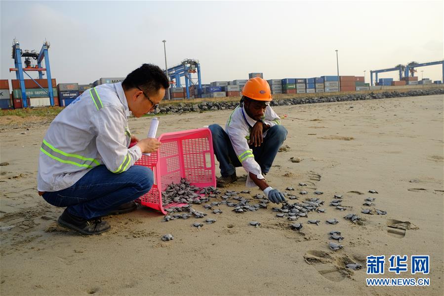 每年10月至次年3月是加納海域海龜?shù)漠a(chǎn)卵與孵化期,成年海龜會(huì)陸續(xù)來(lái)到海灘產(chǎn)卵,繁衍下一代。為了保障項(xiàng)目工程區(qū)域海龜正常產(chǎn)卵孵化,承建單位中國(guó)港灣工程有限責(zé)任公司(中國(guó)港灣)2017年11月建立了海龜孵化基地,將野生海龜在沿岸產(chǎn)的卵收集起來(lái)進(jìn)行集中孵化,在小海龜孵化后放回大海。