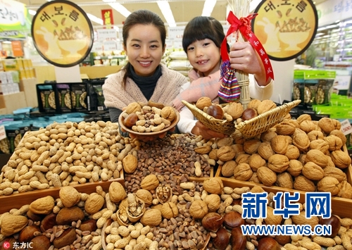 為迎接正月十五,韓國(guó)超市促銷堅(jiān)果食品。(圖片來(lái)源:東方IC)