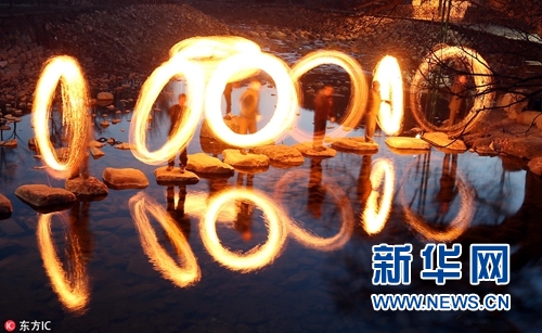 韓國(guó)民眾玩火圈辟邪,迎接元宵節(jié)。(圖片來(lái)源:東方IC)
