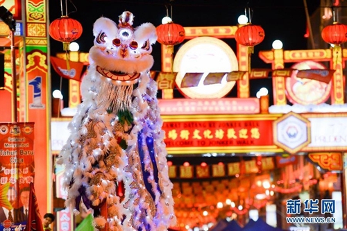 2013年馬來(lái)西亞元宵節(jié),馬六甲武術(shù)龍獅總表演舞龍舞獅,大鬧元宵。新華社發(fā) 張紋綜攝