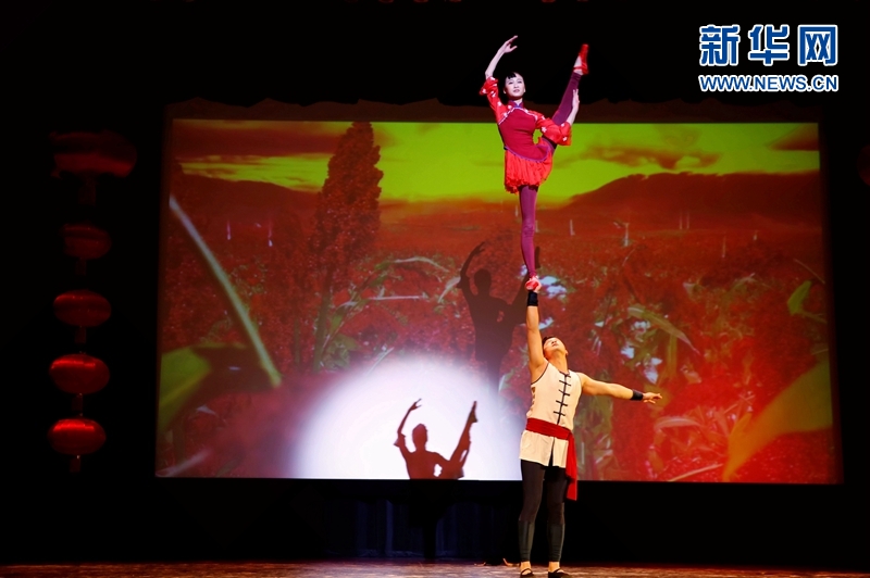 3月2日,在美國密歇根州底特律市,廣東省藝術團的演員在2018年“歡樂春節(jié)--祖國陪你過年”活動中表演雜技《肩上芭蕾》。新華網發(fā)(圖片由中國駐芝加哥總領館提供)
