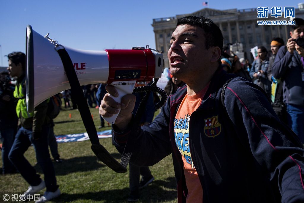 當(dāng)?shù)貢r(shí)間2018年3月5日,美國華盛頓,移民活動(dòng)家在國會(huì)山舉行集會(huì),抗議特朗普終結(jié)“夢想法案”計(jì)劃。(圖片來源:視覺中國)