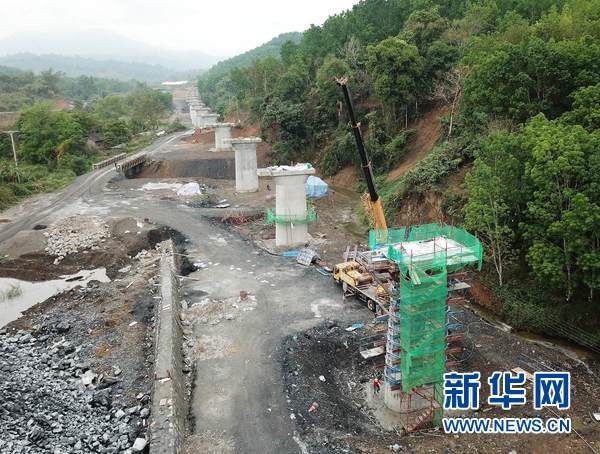 這是3月27日在老撾南塔省航拍的正在施工中的橋梁。新華網(wǎng)發(fā) 劉艾倫攝