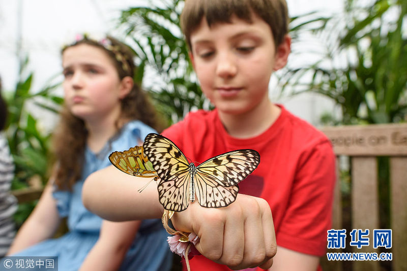 3月28日,英國(guó)倫敦自然歷史博物館舉辦奇異蝴蝶展,各式美麗新奇的蝴蝶翩翩飛舞,吸引了前來(lái)參觀(guān)的兒童與之親密接觸。(圖片來(lái)源:視覺(jué)中國(guó))