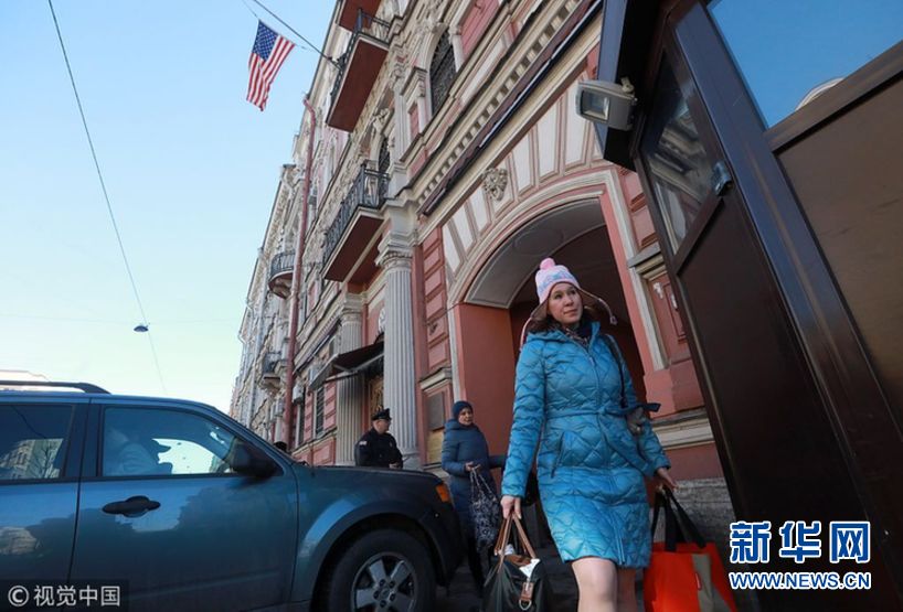 當(dāng)?shù)貢r(shí)間3月30日,俄羅斯圣彼得堡,美國(guó)總領(lǐng)事館。俄羅斯外交部長(zhǎng)拉夫羅夫3月29日發(fā)布消息稱,作為對(duì)“斯克里帕爾事件”的回應(yīng),俄羅斯將驅(qū)逐60名美國(guó)外交官,關(guān)閉美國(guó)駐圣彼得堡總領(lǐng)事館。(圖片來(lái)源:視覺(jué)中國(guó))