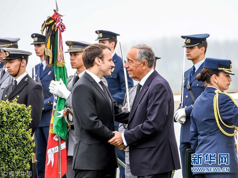 4月9日,法國里什堡,法國總統(tǒng)馬克龍和葡萄牙總統(tǒng)馬塞洛·雷貝洛·德索薩在一戰(zhàn)葡萄牙公墓出席一戰(zhàn)紀念儀式,紀念利斯戰(zhàn)役百年。(圖片來源:視覺中國)
