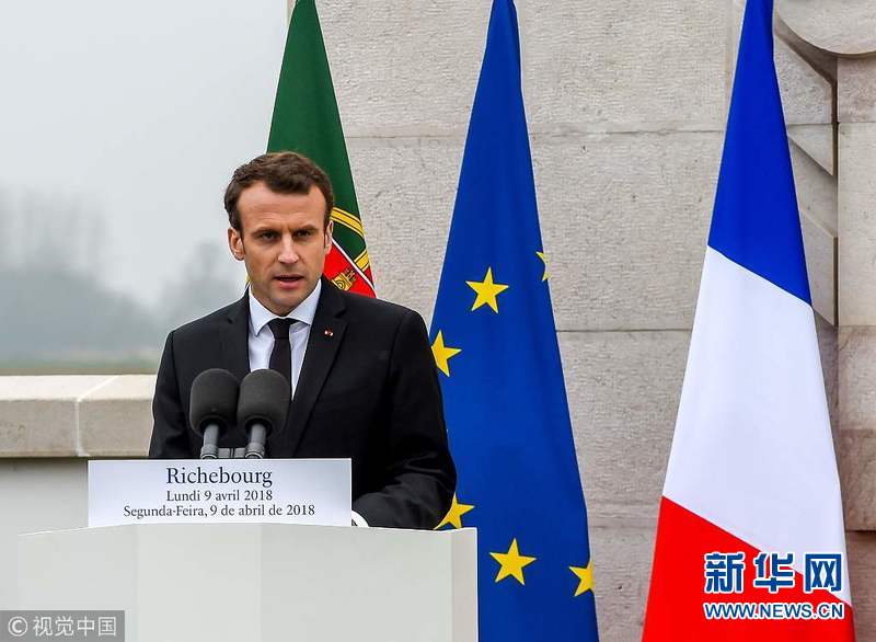 4月9日,法國里什堡,法國總統(tǒng)馬克龍和葡萄牙總統(tǒng)馬塞洛·雷貝洛·德索薩在一戰(zhàn)葡萄牙公墓出席一戰(zhàn)紀(jì)念儀式,紀(jì)念利斯戰(zhàn)役百年。(圖片來源:視覺中國)