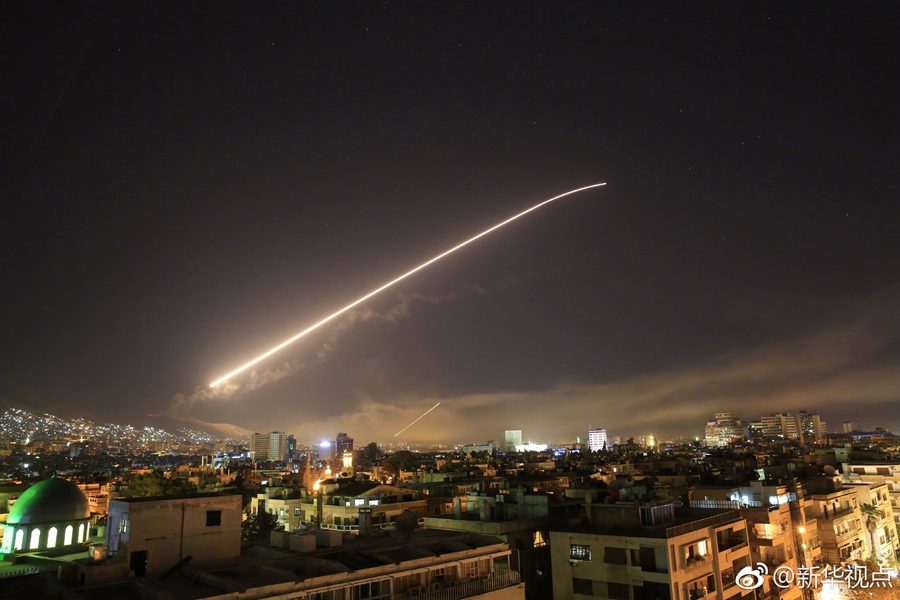 這是4月14日拍攝的遭受襲擊的敘利亞首都大馬士革。敘利亞國家電視臺14日報(bào)道說,當(dāng)?shù)貢r(shí)間14日凌晨,美國等國對敘首都大馬士革發(fā)起軍事行動。 新華社發(fā)(阿馬爾 攝)