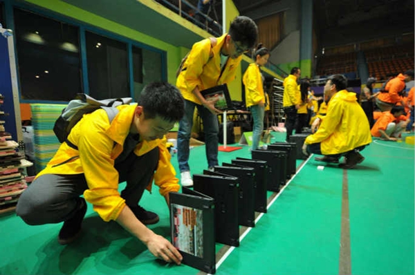 據(jù)吉尼斯世界紀錄官網(wǎng)報道,近日,聯(lián)想集團在北京航空航天大學(xué)體育館舉辦了以“同心聚力,勇往直前”為主題的誓師大會,1300名聯(lián)想員工參加了此次大會,并創(chuàng)造了一項新的吉尼斯世界紀錄稱號。在吉尼斯世界紀錄認證官的見證下,所有員工歷時兩小時,用520臺筆記本電腦成功創(chuàng)造“以多米諾骨牌形式擺放并推倒最多筆記本電腦”的新紀錄。
