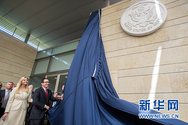 數(shù)百名官員參加了當(dāng)天的美國新使館開館儀式。美國副國務(wù)卿沙利文率領(lǐng)美方代表團(tuán)出席儀式,其中包括美國總統(tǒng)特朗普的女兒伊萬卡和她的丈夫庫什納,以及美財(cái)政部長姆努欽。