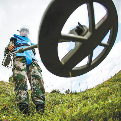 中國維和部隊軍人在黎巴嫩南部進行清排探測作業(yè)。資料照片(新華社發(fā))