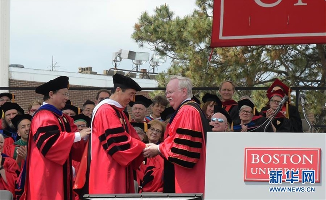 新華社美國波士頓5月20日電(記者徐劍梅)在美國波士頓大學(xué)20日舉行的2018屆畢業(yè)典禮上,中國導(dǎo)演張藝謀被授予波士頓大學(xué)人文藝術(shù)榮譽(yù)博士學(xué)位。