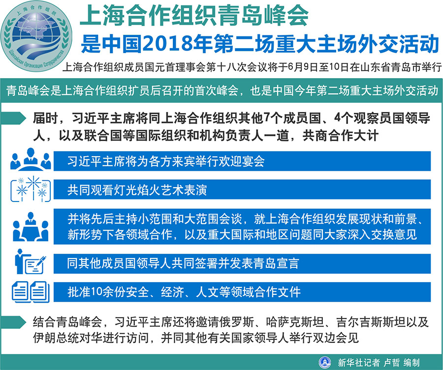 王毅宣布,上海合作組織成員國(guó)元首理事會(huì)第十八次會(huì)議將于6月9日至10日在山東省青島市舉行。中國(guó)國(guó)家主席習(xí)近平將主持會(huì)議并舉行相關(guān)活動(dòng)。上海合作組織成員國(guó)、觀察員國(guó)領(lǐng)導(dǎo)人和有關(guān)國(guó)際組織負(fù)責(zé)人將應(yīng)邀與會(huì)。