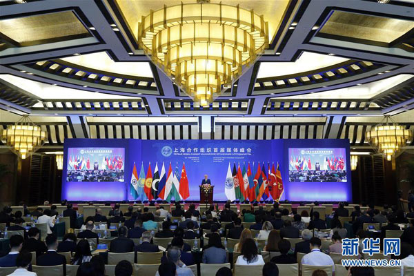 6月1日,由國(guó)務(wù)院新聞辦公室主辦的上海合作組織首屆媒體峰會(huì)在北京開(kāi)幕。這是上合組織秘書(shū)長(zhǎng)阿利莫夫在開(kāi)幕式上致辭。 新華社記者 沈伯韓攝