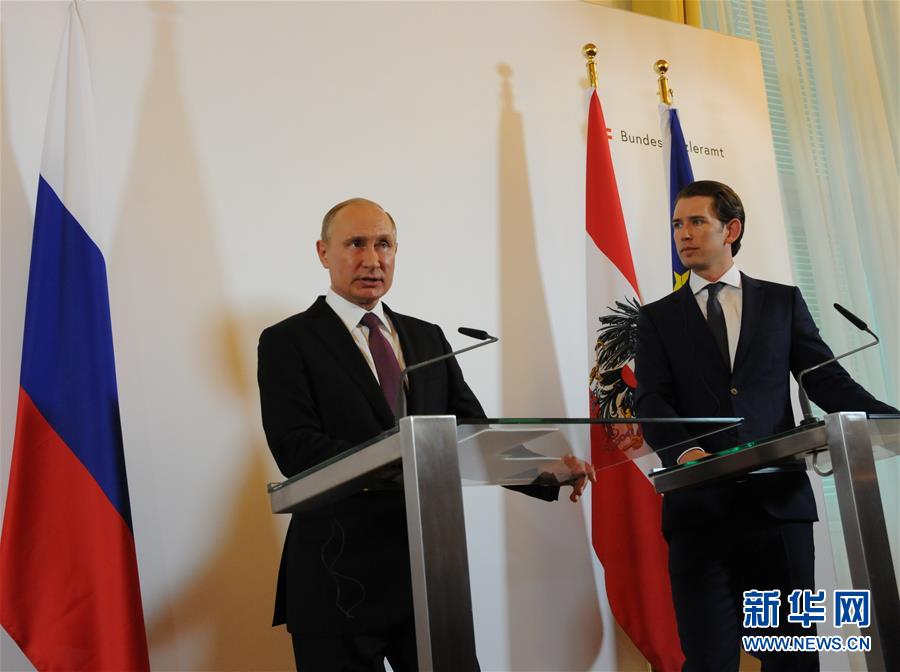 6月5日,在奧地利維也納總統(tǒng)府,俄羅斯總統(tǒng)普京(左)和奧地利總理庫爾茨出席新聞發(fā)布會。新華社記者 劉向 攝