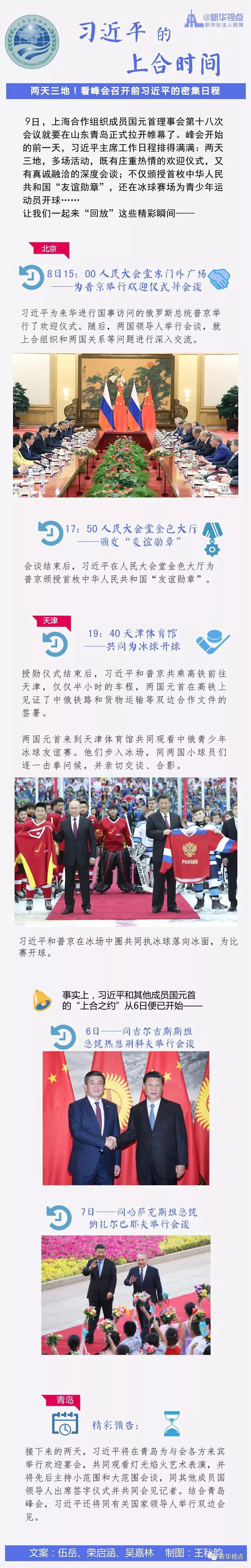9日,上海合作組織成員國元首理事會(huì)第十八次會(huì)議就要在山東青島正式拉開帷幕了。峰會(huì)開始的前一天,習(xí)近平主席工作日程排得滿滿:兩天三地,多場活動(dòng),既有莊重?zé)崆榈臍g迎儀式,又有真誠融洽的深度會(huì)談;不僅頒授首枚中華人民共和國“友誼勛章”,還在冰球賽場為青少年運(yùn)動(dòng)員開球……讓我們一起來“回放”這些精彩瞬間????