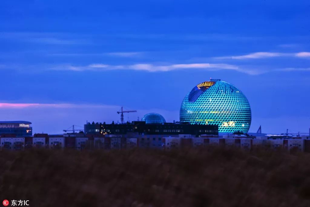 哈薩克斯坦阿斯塔納世博會(huì)主場(chǎng)館夢(mèng)幻夜景,當(dāng)今世界最大玻璃球形建筑。