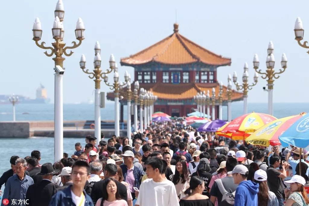 游人在中國(guó)青島棧橋風(fēng)景區(qū)游玩。