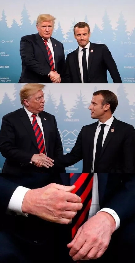 兩人在G7見(jiàn)面握手時(shí),馬克龍毫不客氣地把特朗普的手握出了白印子……