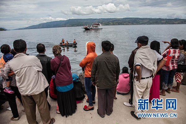 6月20日,在印度尼西亞北蘇門答臘省,人們在岸上觀看搜救行動。新華社發(fā)(達(dá)馬尼克攝)