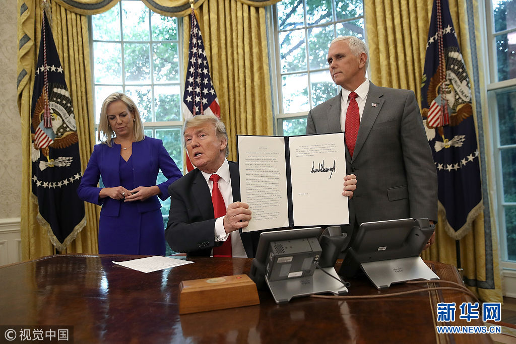 6月20日,美國華盛頓,美國總統(tǒng)特朗普撤回了此前為打擊非法移民,進(jìn)而導(dǎo)致大批兒童與父母強(qiáng)制分離的“零容忍”政策。(圖片來源:視覺中國)
