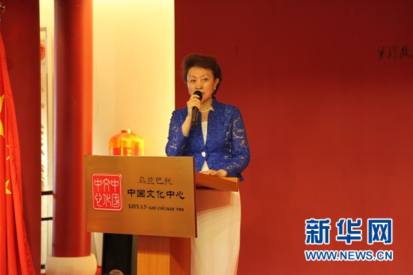 中國駐蒙古國大使館文化參贊兼烏蘭巴托中國文化中心主任李薇致辭。新華網(wǎng)發(fā) 蘇力雅攝