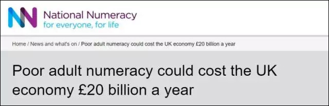 英國(guó)國(guó)家數(shù)學(xué)能力中心就曾“恨鐵不成鋼”地發(fā)布統(tǒng)計(jì)報(bào)告稱:英國(guó)成年人糟糕的數(shù)學(xué)水平會(huì)讓英國(guó)每年無(wú)意中損失200億英鎊。