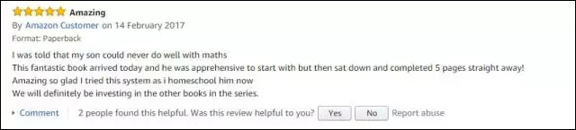 在英國(guó)亞馬遜網(wǎng)站《一課一練(英國(guó)版)》銷(xiāo)售頁(yè)面上,有讀者留言,“有人說(shuō)我兒子可能無(wú)法學(xué)好數(shù)學(xué),今天拿到這本非常具有魔力的數(shù)學(xué)書(shū),孩子一坐下來(lái)就馬上完成了5頁(yè),真是奇跡!我現(xiàn)在很高興使用了這個(gè)系列數(shù)學(xué)教材,我們一定會(huì)買(mǎi)其他幾本?!?/p>