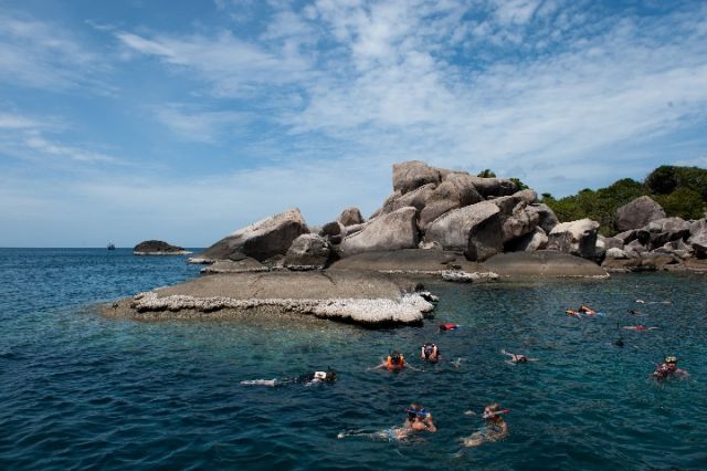 2012年7月31日,一群游客在泰國(guó)濤島的近海海灣浮潛。(新華社記者劉潺攝)
