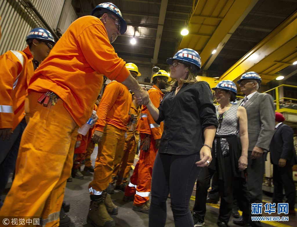 當(dāng)?shù)貢r間2018年6月29日,加拿大漢密爾頓,加拿大外交部長弗里蘭、經(jīng)濟發(fā)展部長貝恩斯和勞工部長哈伊杜造訪斯特爾科鋼鐵公司,并共同宣布從7月1日起,加拿大將對約126億美元從美國進(jìn)口的商品加征關(guān)稅,以報復(fù)特朗普政府對加拿大鋼鋁產(chǎn)品加征關(guān)稅。他們還表示,加拿大政府將向本國鋼鋁產(chǎn)業(yè)和制造業(yè)提供約15億美元財政援助。(圖片來源:視覺中國)
