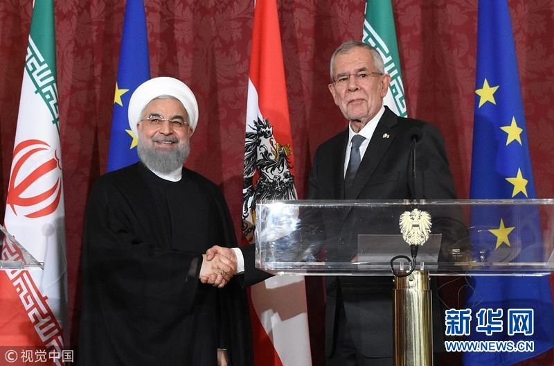 2018年7月4日,奧地利維也納,伊朗總統(tǒng)魯哈尼抵達(dá)奧地利進(jìn)行訪問(wèn),會(huì)晤?yuàn)W地利總統(tǒng)范德貝倫。伊朗總統(tǒng)魯哈尼2日出發(fā)前往瑞士和奧地利訪問(wèn)。他這次西歐行將重點(diǎn)討論伊朗核問(wèn)題全面協(xié)議。(圖片來(lái)源:視覺(jué)中國(guó))
