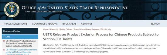 圖為美國貿(mào)易代表處官網(wǎng)上的該通知