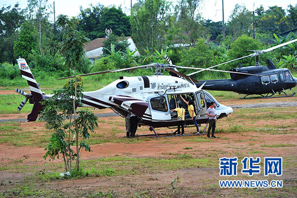 7月9日,在泰國清萊,直升機在山洞附近待命。新華社發(fā)(拉亨 攝)