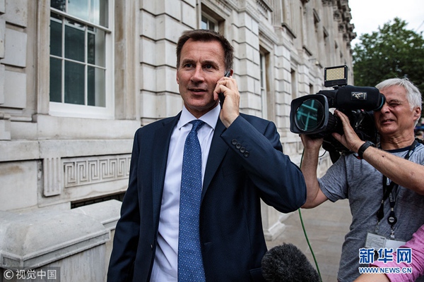 新華社倫敦7月9日電(記者桂濤 梁希之)英國首相特雷莎·梅9日任命衛(wèi)生大臣杰里米·亨特為新的外交大臣,接替當(dāng)天因“脫歐”分歧而辭職的鮑里斯·約翰遜。