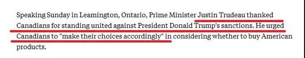 第三,大是大非上一定要團結一致。一說到團結,有的人總會聯(lián)想過于豐富:要么認為這是要老百姓放棄自己的思考,要么認為必須通過極端方式表達自己洶涌的激情——我們印象里一向溫和的加拿大,這次是怎么做的?用美聯(lián)社報道的話:特魯多在利明頓市演講時表示:感謝加拿大民眾團結一致反對特朗普的制裁,并鼓勵民眾根據(jù)自己的實際情況做出要不要買美國產(chǎn)品的選擇。特魯多為什么這樣說?事實上,自從G7之后特朗普攻擊特魯多“軟弱”“虛偽”以來,推特上“購買加拿大產(chǎn)品”“抵制美國貨”“抵制美國”“擺脫川普”等話題就在不斷升溫,很多加拿大人調整了消費習慣,轉而購買自己國家的產(chǎn)品。網(wǎng)友們的這些抵制活動,被特魯多稱為是一股“愛國熱情”。