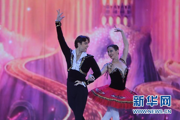 兩位演員在“斯拉夫巴扎”國際藝術節(jié)上表演芭蕾。新華社記者 魏忠杰攝