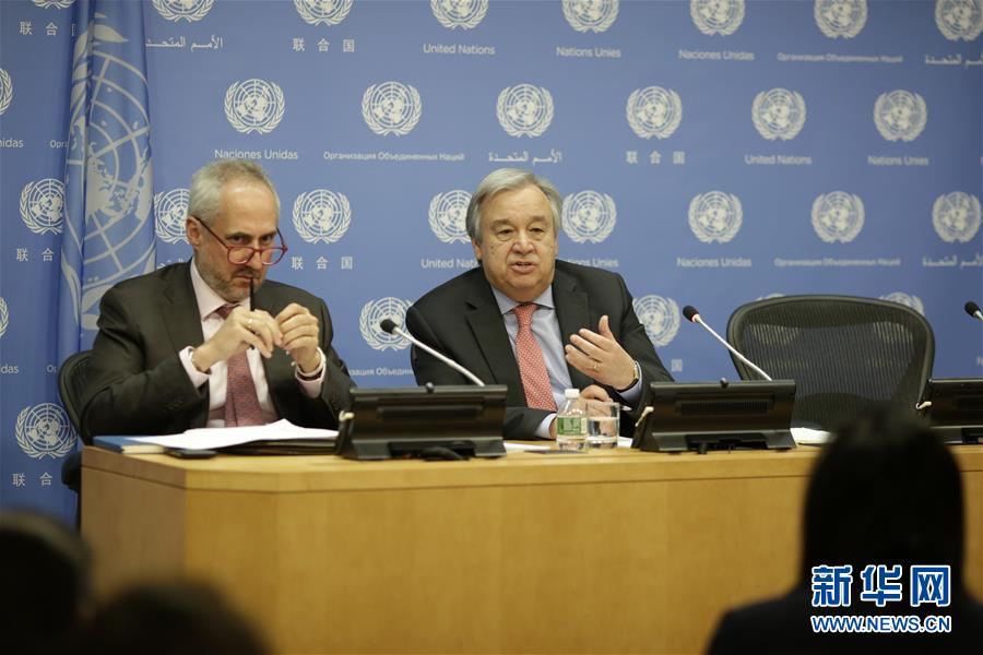 7月12日,在位于紐約的聯(lián)合國總部,聯(lián)合國秘書長古特雷斯(右)出席記者招待會。聯(lián)合國秘書長古特雷斯12日舉行記者招待會,強調(diào)多邊主義和基于規(guī)則的國際關(guān)系對于應對全球挑戰(zhàn)的重要性。新華社記者 李木子 攝