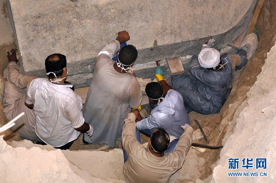 7月19日,考古人員在埃及亞歷山大的石棺開啟現(xiàn)場工作。 埃及文物部19日宣布,考古人員近日在埃及北部地中海沿岸城市亞歷山大發(fā)現(xiàn)一口裝有三具古代武士遺骸的石棺。 新華社發(fā)
