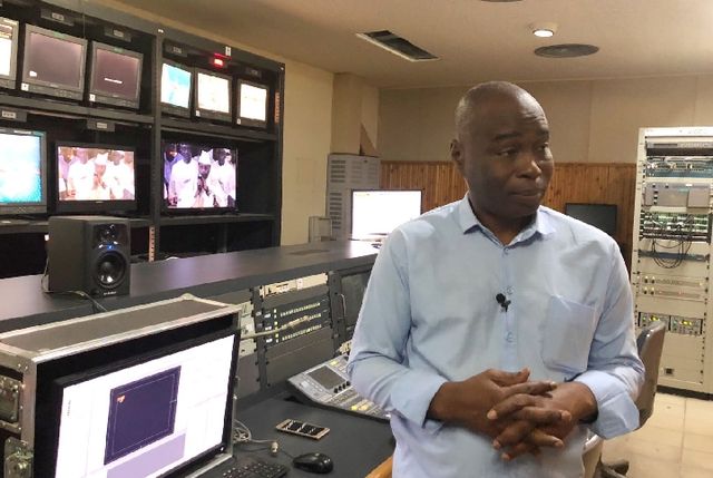 2018年7月19日,塞內加爾國家電視臺新聞部主任達哈·巴在工作間接受記者采訪。(新華社記者孟娜攝)