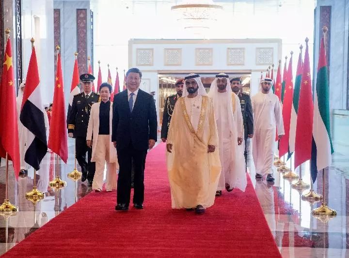 訪問過程中,阿聯(lián)酋領(lǐng)導(dǎo)人舉行兩場儀式,以表達對習(xí)近平主席的熱烈歡迎。