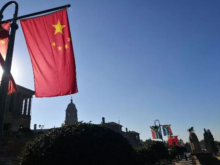 比勒陀利亞聯(lián)邦大廈廣場(chǎng),草木蔥蘢。廣場(chǎng)旁的大道上,中國(guó)和南非兩國(guó)國(guó)旗高高掛起,迎風(fēng)飄揚(yáng)。