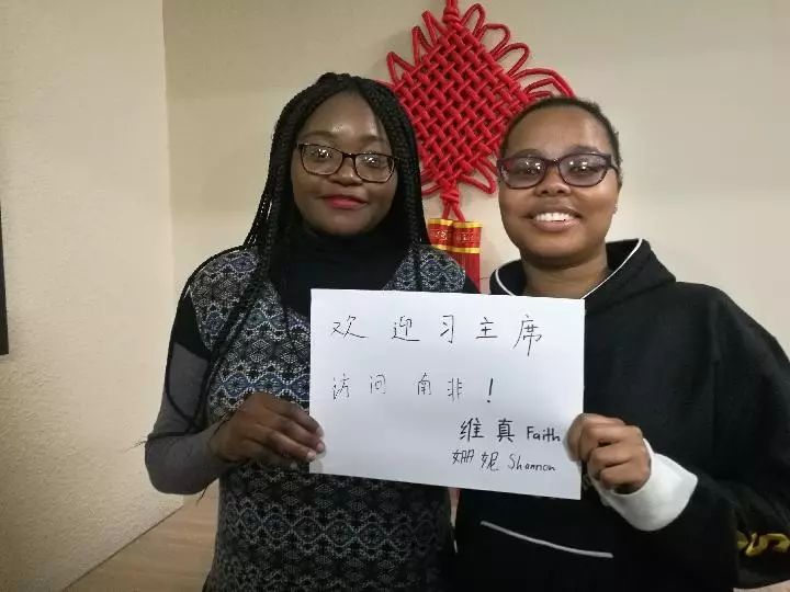 “雖然中文學(xué)起來很有挑戰(zhàn)性,但這也恰恰是吸引我的原因?!眾櫮莺屯榫S真向記者驕傲地展示她們書寫的漢字:歡迎習(xí)主席訪問南非!