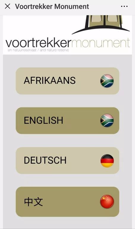 掃描二維碼后可以看到關(guān)于每幅浮雕的詳細(xì)說明,共有四種語言供選擇:南非荷蘭語、英語、德語和漢語。