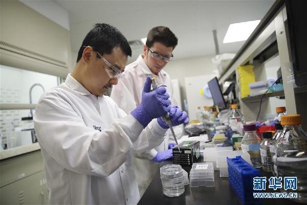 7月9日,在美國(guó)賓夕法尼亞州切斯特縣,方達(dá)醫(yī)藥公司研究人員在實(shí)驗(yàn)室里工作。新華社記者王迎攝