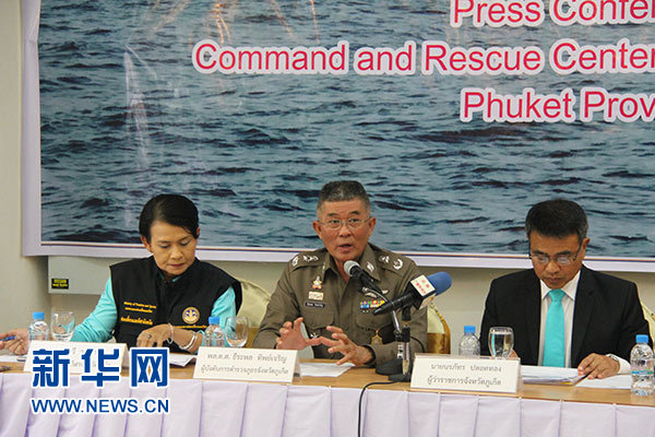 8月7日,普吉府警察局局長提拉蓬·提乍龍(中)在發(fā)布會上介紹案件調(diào)查情況。新華社記者 徐海濤 攝
