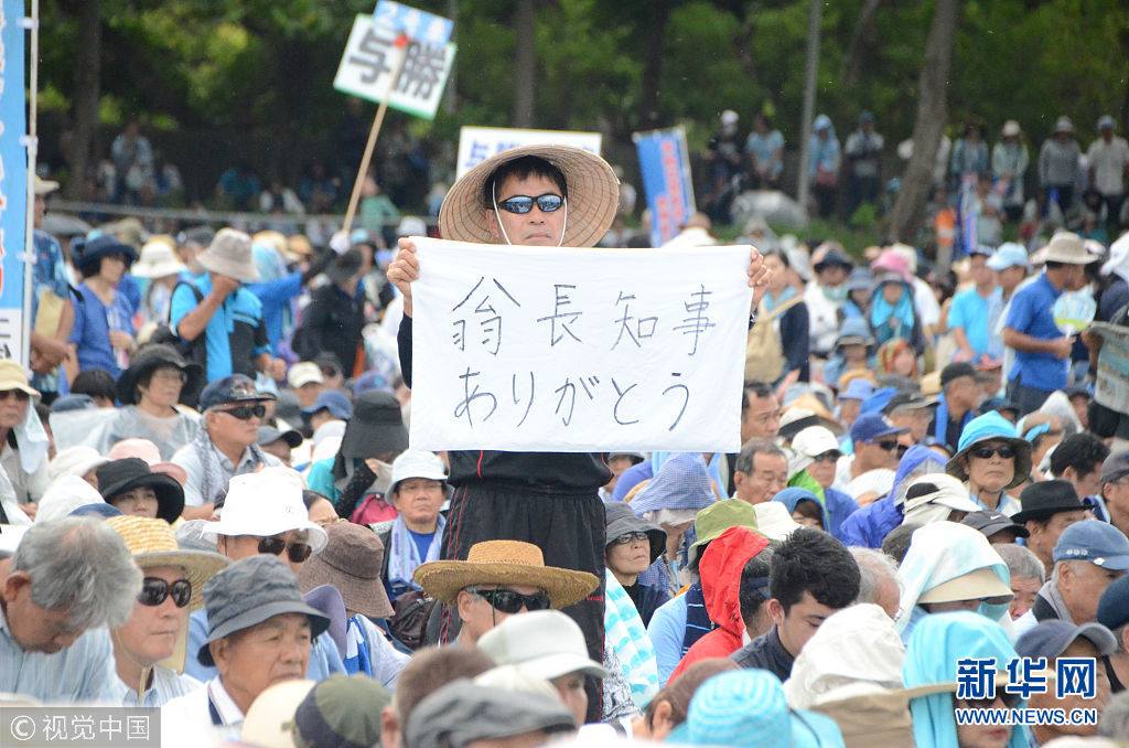 當(dāng)?shù)貢r(shí)間2018年8月11日,日本沖繩縣約7萬民眾8月11日在那霸市舉行大規(guī)模集會(huì),反對(duì)駐日美軍將普天間基地遷往名護(hù)市邊野古地區(qū),要求駐日美軍放棄在邊野古地區(qū)新建基地并立即關(guān)閉普天間機(jī)場。當(dāng)天,日本東京都、大阪府、福岡、北海道縣等地民眾也同時(shí)舉行集會(huì)和游行,抗議日本政府推進(jìn)邊野古地區(qū)填海施工。(圖片來源:視覺中國)