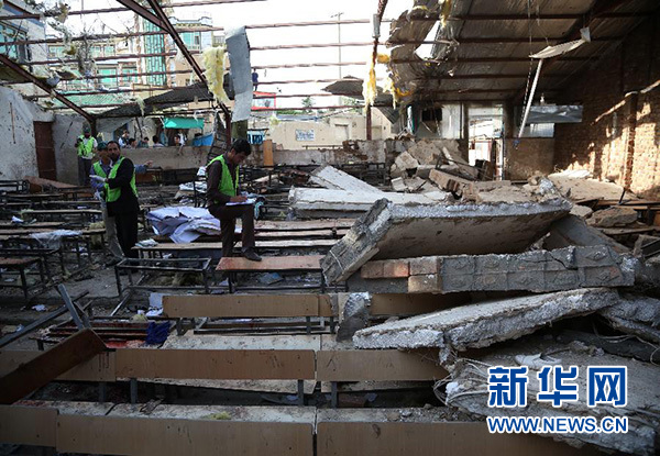 新華社報道員在現(xiàn)場看到,此次襲擊威力巨大,遇襲教室內(nèi)的天花板在爆炸中嚴重受損,從黑板、座椅到地面,到處都能看到尚未來得及清理的血跡,學(xué)員們的課本、文具等四處散落。教室外不時有家長趕來,急切打聽自家孩子的下落。