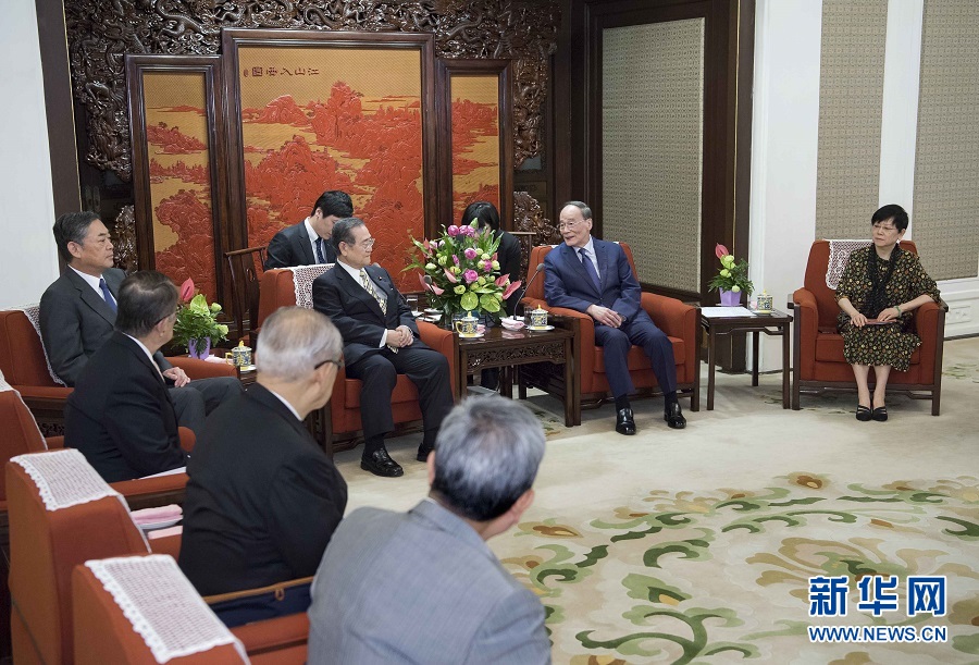 8月24日,國家副主席王岐山在北京中南海會見日中協(xié)會會長、自民黨眾議員野田毅率領(lǐng)的日中協(xié)會代表團。 新華社記者李濤攝