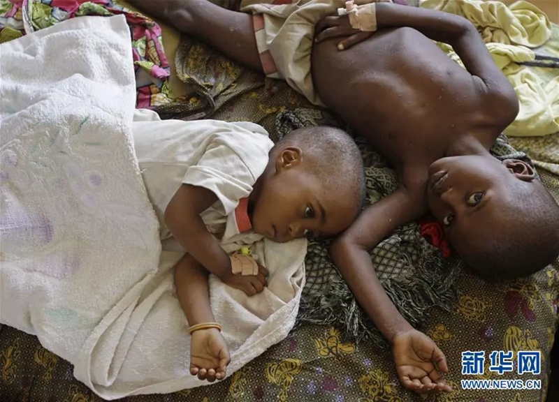 在剛果(金)瓦利卡萊,兩名得了瘧疾的兒童躺在醫(yī)院里。新華社/美聯(lián)