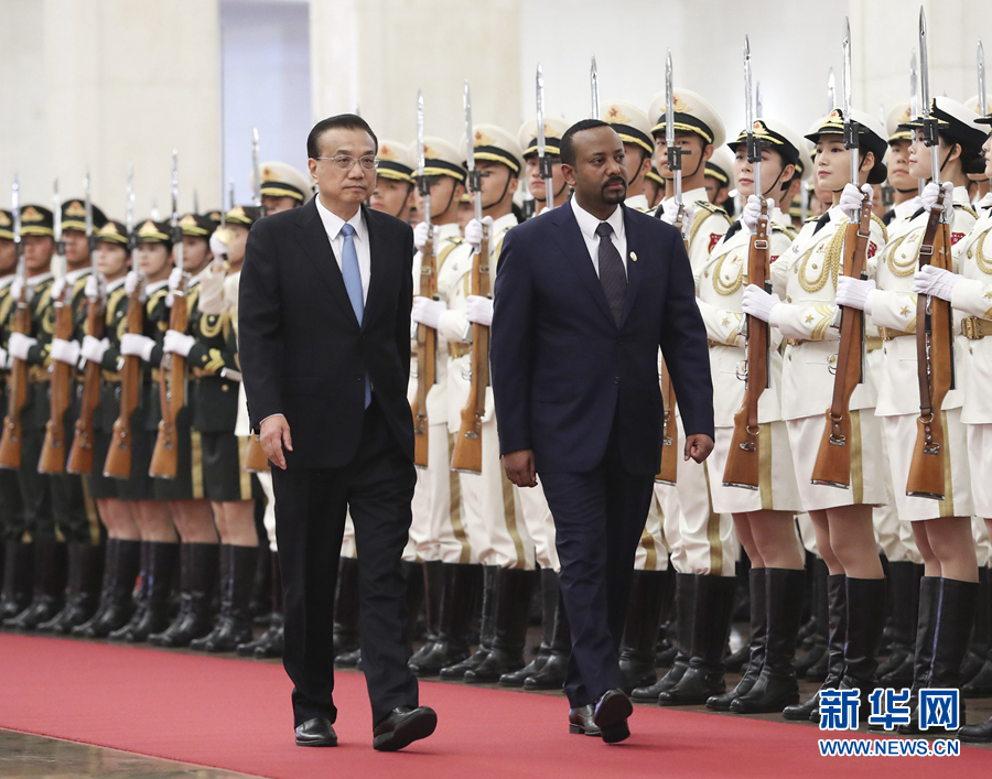 9月3日,國(guó)務(wù)院總理李克強(qiáng)在北京人民大會(huì)堂同埃塞俄比亞總理阿比舉行會(huì)談。這是會(huì)談前,李克強(qiáng)在人民大會(huì)堂中央大廳為阿比舉行歡迎儀式。 新華社記者 龐興雷 攝